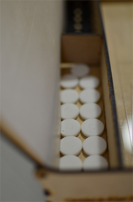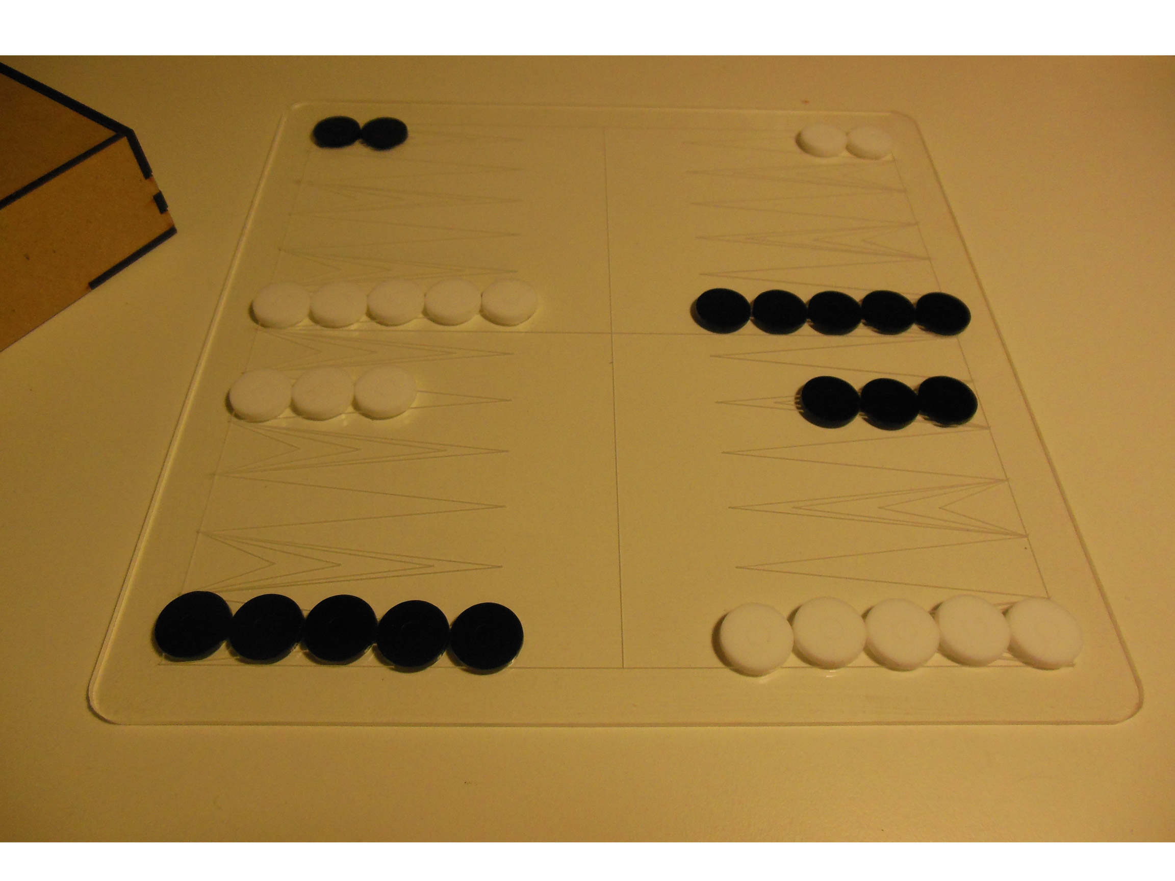 MATERIAL: Tablero - Acrílico transparente // Fichas: Acrílico blanco y negro